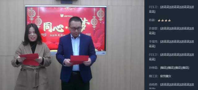 最后,公司还安排了抽奖环节。所有员工都踊跃参加其中,虽然是线上抽奖,但是弹幕不断,热闹非凡。